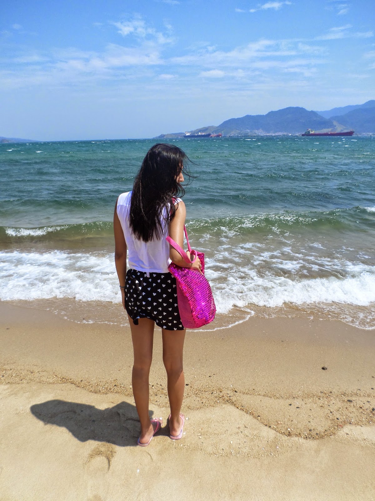 Olááá meninas, vim compartilhar com vocês o último dia da viagem (buábuá), como nosso ônibus sairia às 16:00, não podíamos ir para muito longe pra não arriscar perde-lo né? Então fomos dar um voltinha e paramos na praia do Perequê para apreciar a vista, acabei nem entrando na água, exceto para me limpar da guerrinha de areia que fiz com o Marco hahaha